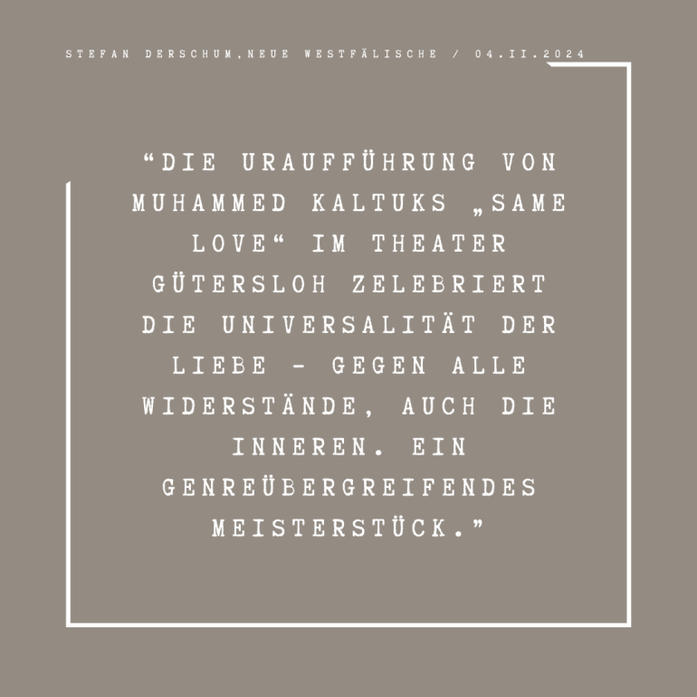 The piece Same Love will be presentet as a Stage Performance and as a Site Specific Performance. In collaboration with the Urban Arts Ensemble Ruhr and Pottporus the Stage performance has been elaborated and presented at Theater Gütersloh (November 2024).